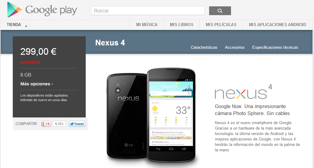 El lanzamiento de este terminal fue el pasado 13 de noviembre y lo más sorprendente es el precio del mismo, 299€ en su versión de 8GB y 349€ en la versión de 16GB. Un smartphone de gama alta por este precio es una auténtica ganga y podria haberse convertido en el regalo perfecto para muchos en estas navidades. Muchos usuarios, viendo la gestión tan nefasta que están haciendo Google y LG en este caso, han optado por comprar otros terminales similares en calidad, que no en precio, como los Samsung Galaxy S3 o el iPhone 5.
